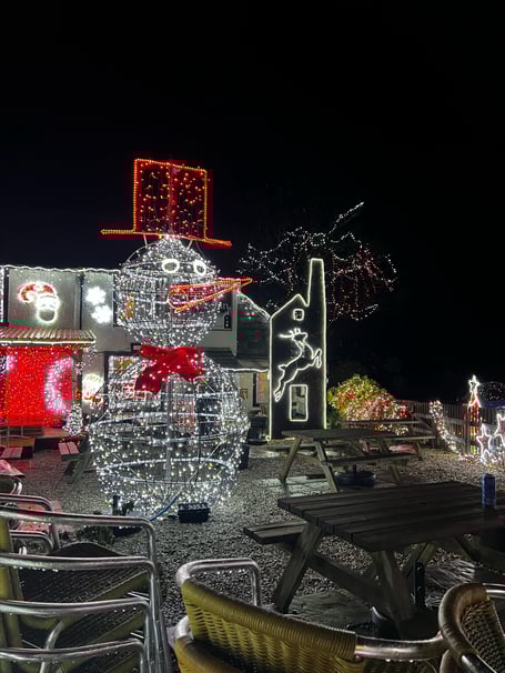 Reluctantly, after The Caradon Inn’s stunning lights display was illuminated everyone was forced to shelter indoors where hosts, Sarah and Alan Collings, and their family and friends, offered up mince pies and mulled wine alongside more usual pub fare including refreshments.