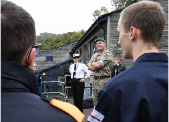 He met Royal Navy recruits in their penultimate training week at Jupiter Point, HMS Raleigh’s sea-sense training centre on the River Lynher.