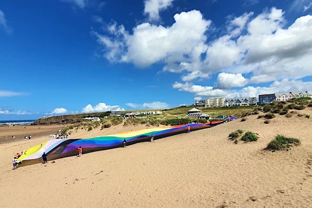 At 12 noon on the July, 27, Bude’s pride will march through the town centre of Bude with the world’s largest pride flag.