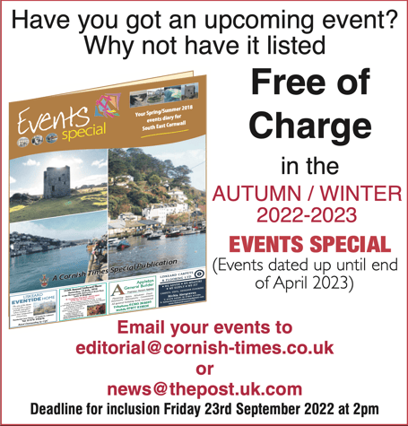 Why not have it listed free of charge in the Autumn/Winter 2022-2023 in our ‘events special’ (Events dated up until end of April 2023)