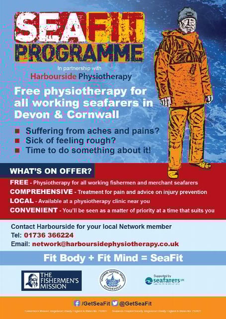 SeaFit physiotherapist, Jennifer Cardew will be running a drop-in clinic on Friday, May 24 from 9am to 12 noon at the Looe Harbour Office. She can provide advice to any fisherman working out of the port, and arrange a full assessment and follow-up treatment where appropriate, at a time that’s convenient for them.