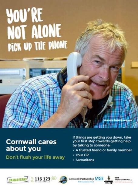 The poster campaign has been developed by a team of partners, including Cornwall Partnership NHS Foundation Trust (CFT), Cornwall Council, St Austell Brewery, the Samaritans and BBC Radio Cornwall, and will be displayed in pub toilets, GP surgeries and other public areas.