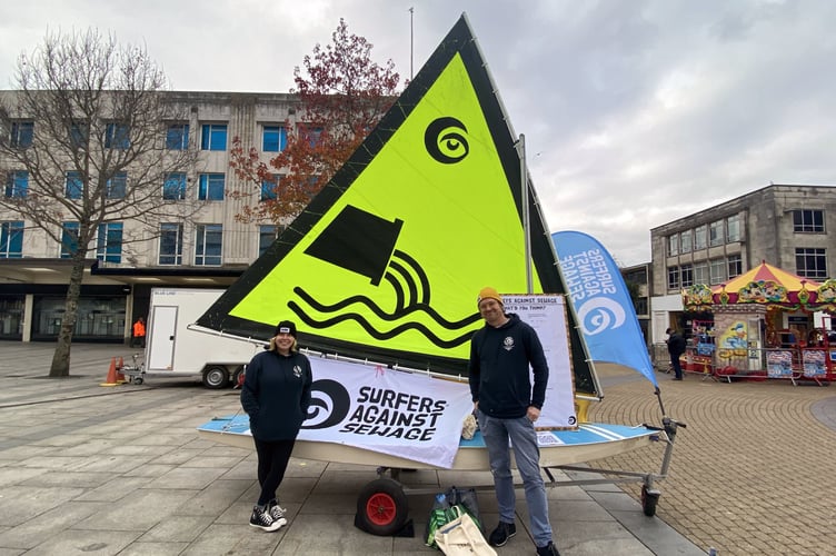 Following the release of the Surfers Against Sewage (SAS) 2023 water quality report, two regional representatives from Downderry and Plymouth held a sewage protest and information outreach event in Plymouth city centre on November 21.