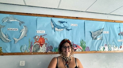 The school recently welcomed Maisie, a former pupil who is now studying art at Plymouth University. During her visit, Maisie, along with students, created an artistic display which captured the school’s values.