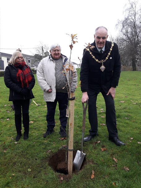 An oak was chosen by the town council as it holds a special place in the nation’s culture, history, and landscape, it also supports more life than any other native tree species in the UK. An oak tree can live for many hundreds of years and during that time will absorb atmospheric carbon and lock it up for centuries. In our parks they also have an important role to play by reducing pollution and providing shade.