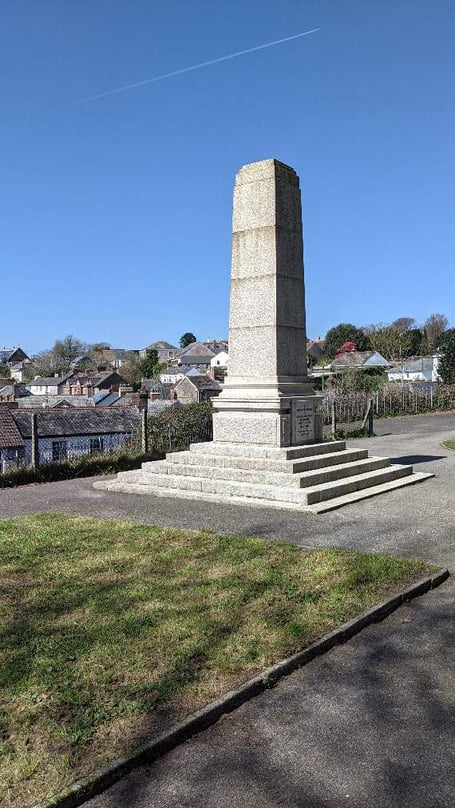 Liskeard’s War Memorial is in Castle Park, and while in an elevated spot, the location is up a steep slope with very little nearby parking.