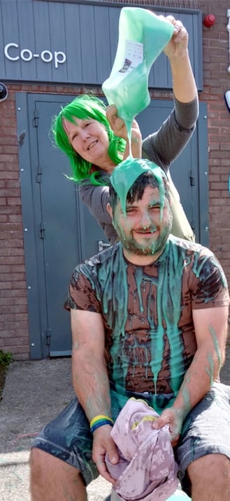 Staff and customers in Liskeard joined in a nationwide community drive by the Co-op recently and raised hundreds of pounds for children’s charity Barnardo’s — with one of the store team receiving a ‘sliming’ in the process.