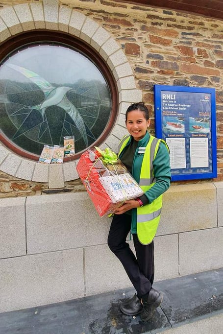 Staff member Juren called in at the lifeboat station with a hamper of tea, coffee, biscuits and snacks.